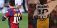La escena se forjó en el minuto 73 en el Camp Nou: allí la Pulga se dio el merecido gusto de convertir quizás uno de sus goles más esperados, para tener la chance de rendirle tributo al mítico crack nacido en Fiorito. Y allí fue el rosarino.