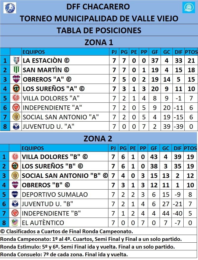 La Estación en la Zona 1 y Villa Dolores “B” en la Zona 2 fueron los ganadores de sus respectivos grupos en la 1ra. fase del certamen.