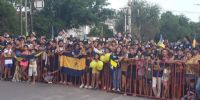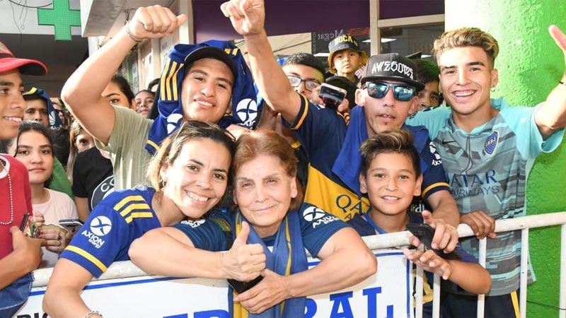 La delegación xeneize llegó en un vuelo chárter al aeropuerto “Vicecomodoro Ángel Aragonés”, donde fue aguardado por miles de hinchas que, ´posteriormente, acompañaron al plantel en la caravana organizada por las diferentes agrupaciones de Santiago del Estero.