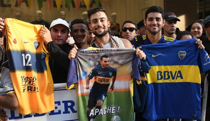 Una vez arribado a la capital “mistolera”, inició trabajosamente una gigantesca caravana que terminó en el Hotel Carlos V, donde se aloja el plantel Xeneize, y donde esperaban muchos más simpatizantes del “auriazul”.