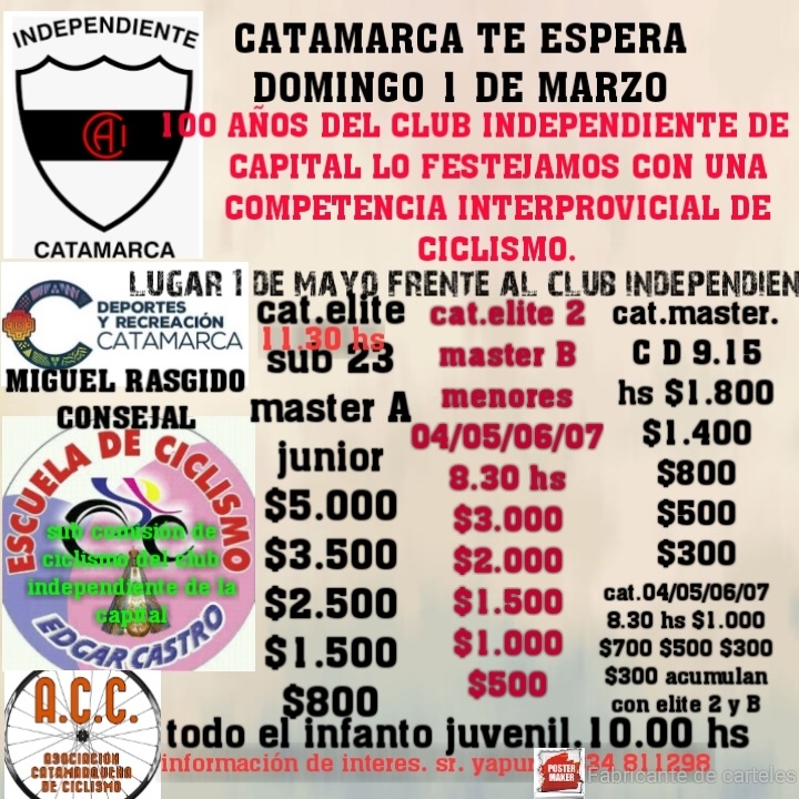 La carrera estará destinada para todas las categorías Máster, Elite y todo el Infanto Juvenil.