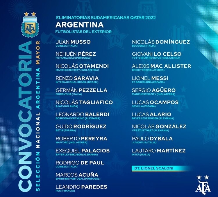 A dos semanas del inicio oficial de las Eliminatorias Sudamericanas camino a la Copa del Mundo de Qatar 2022, Scaloni confirmó los 23 futbolistas que se sumarán al seleccionado mayor para afrontar la doble fecha dispuesta por Conmebol para marzo: el jueves 26 frente a Ecuador, la Albiceleste recibirá al equipo de Jordi Cruyff en la Bombonera. Cinco días más tarde, Argentina visitará a Bolivia en la altura de La Paz. Hay un detalle no menor: solo figuran los futbolistas del ámbito internacional y faltan los del torneo argentino.