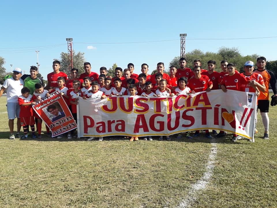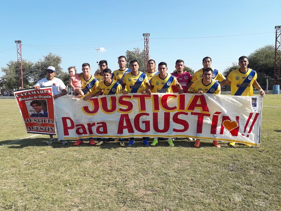 En el partido, que se jugó entre Social Bañado y Policial, los jugadores de ambos equipos pidieron justicia por Agustín Rasguido desplegado un cartel.