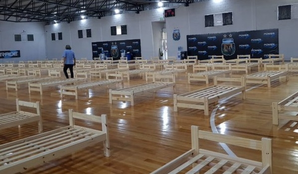 Muchas instituciones del fútbol argentino pusieron a disposición sus instalaciones para colaborar con el gobierno en las campañas sanitarias por la pandemia del coronavirus. En el predio de Ezeiza de la Asociación del Fútbol Argentino (AFA), iniciaron los trabajos para el armado de 120 camas en el gimnasio de futsal.