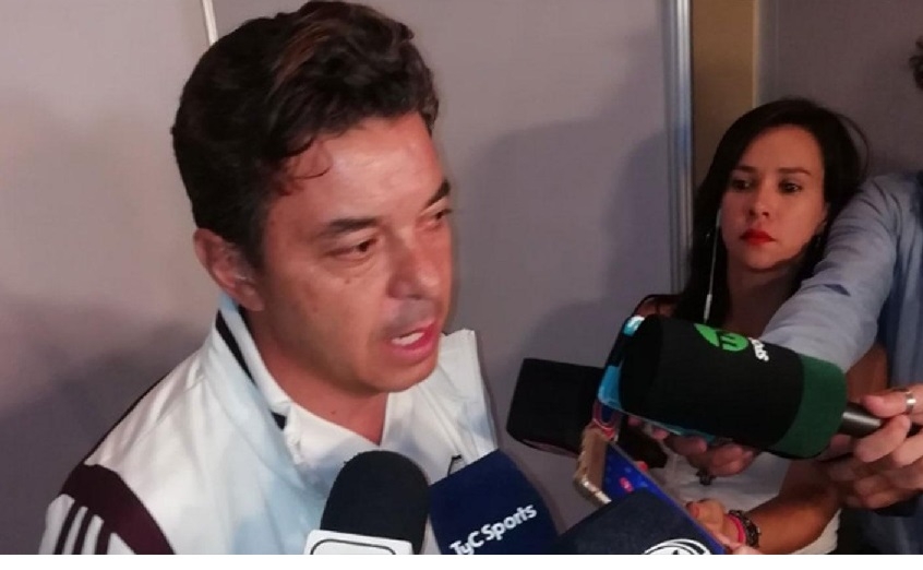 "Sabemos que dependemos absolutamente de nosotros. Vamos a jugar con la mentalidad de que si ganamos seremos campeones", fueron las primeras palabras del entrenador del "Millonario" en una improvisada charla de prensa que realizó minutos antes de las 21.