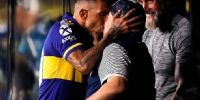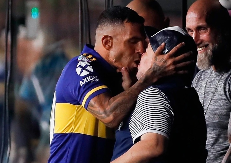 Maradona duplicó la apuesta en la previa cuando le comentaron las declaraciones que había hecho el capitán de Boca: “Y yo a Carlitos le quiero decir que le voy a dar un pico, que lo voy a romper todo”. Y cumplió: apenas terminó el sorteo entre los capitanes, Carlos caminó hasta el banco de suplentes y el Diez se preparó para darle el beso que había anunciado.