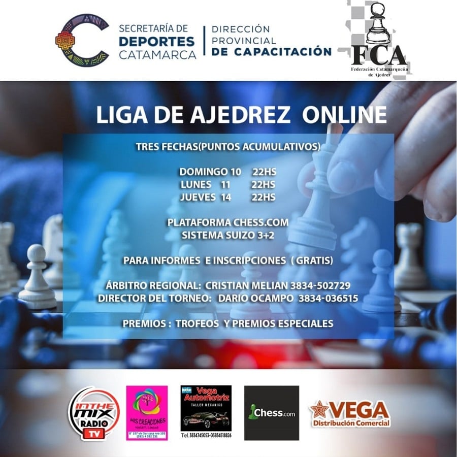 La competencia se llevará a cabo por la plataforma chess.com , con inscripción gratuita. Por más información, comunicarse a los Cel. 3834505729 - 3834036515.