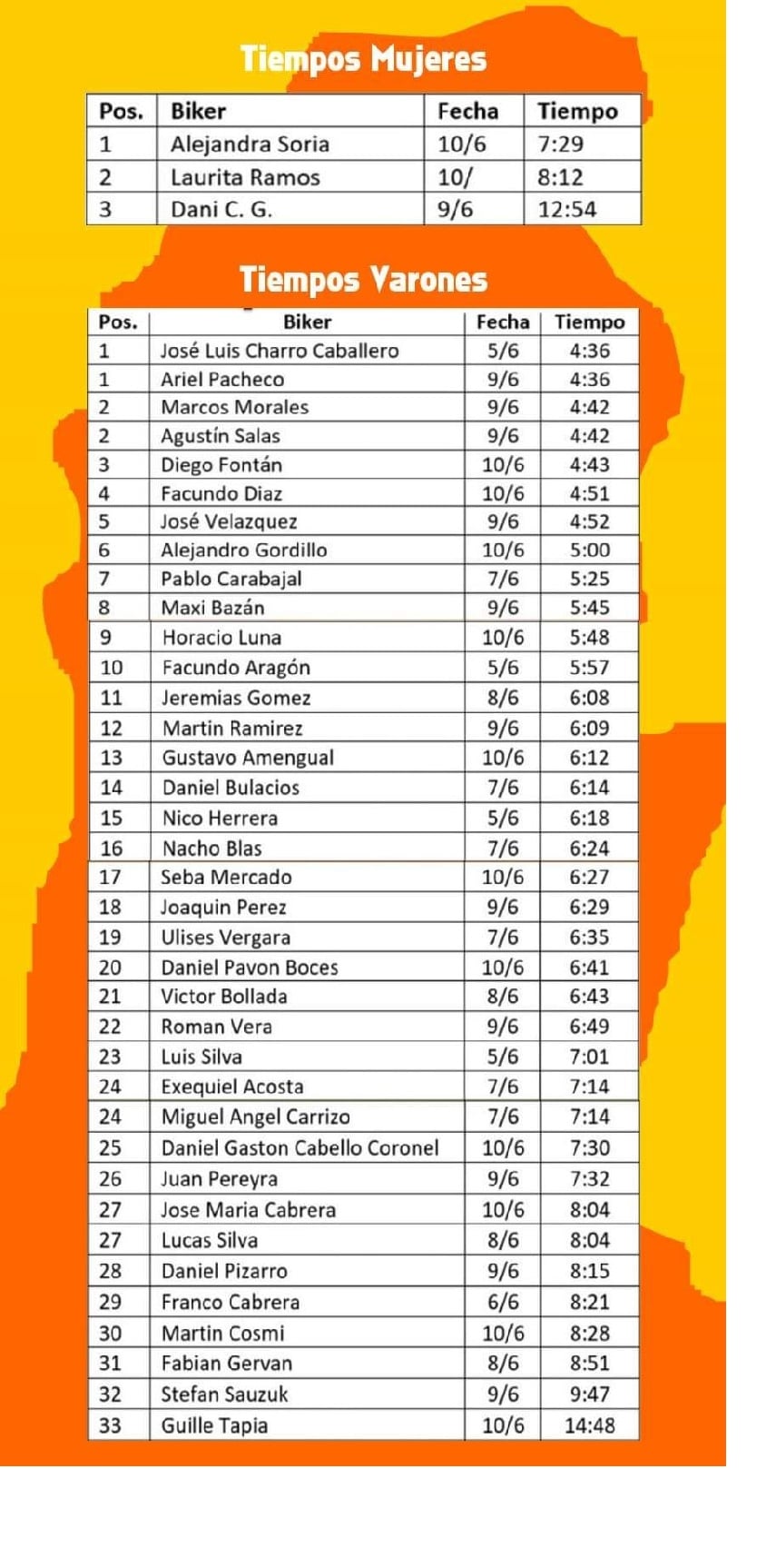 Fueron un total de 36 bikers los que entre el viernes pasado y el miércoles último salieron a "rodar" y registraron sus tiempos.