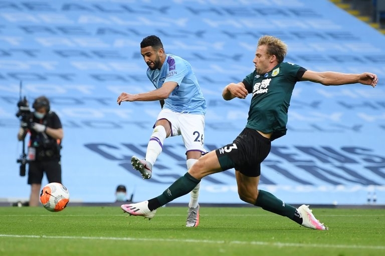 Ya en tiempo adicionado, el Kun recibió un golpe por parte de Ben Mee, que lo obligó a salir de la cancha por una molestia en su rodilla izquierda, que ya lo venía a mal traer. Luego, el árbitro decidió consultar con el VAR dicha acción y terminó sancionando penal para el local. Mahrez fue el encargado de la ejecución desde los doce pasos y anotó el 3-0 antes del descanso.