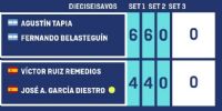 La sorpresa en la primera jornada del cuadro final, de los 16avos. de final con todos los favoritos en disputa, lo darían Miguel Lamperti y Lucas Bergamini, que en un partido de infarto eliminaban a la dio la pareja Nro. 6 Urieles Botello y Javi Ruiz imponiéndose por 7-6 / 7-6 para asegurarse el pase a los 8vos. de final. Momo González y Tito Allemandi serán sus rivales en la siguiente ronda, tras batir por 6-4 / 6-3 a José Rico y Ernesto Moreno.