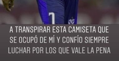 Además, enlazó su despedida con el presente de su continuidad en el Fortín, sumando una historia a la misma plataforma acompañada de una foto suya en un partido con la camiseta de la V azulada: "A transpirar esta camiseta que se ocupó de mí y confió siempre en luchar por los que valen la pena".
