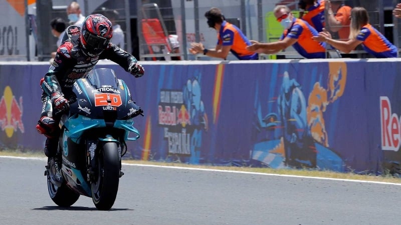 El francés Fabio Quatararo se adjudicó hoy el Gran Premio de España, primera en su carrera deportiva, en lo que siginificó la vuelta y 1ra. fecha del MotoGP a la actividad, en medio de la pandemia del coronavirus.