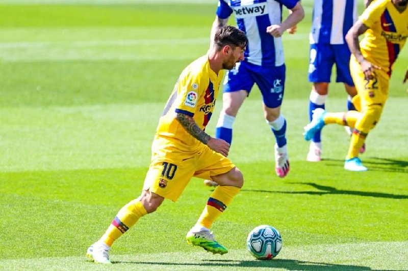 El argentino hizo un doblete en la goleada 5 a 0 del Barcelonea ante el Alavés, y se consagró "Pichichi" (máximo goleador de la Liga Española de fútbol) por séptima vez, único fútbolista en llegar a esa marca.