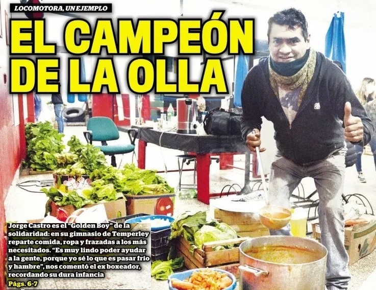 Si uno nombra a Jorge Castro, automáticamente se le vienen a la mente las grandes peleas que tuvo arriba de un cuadrilátero de boxeo, donde alcanzó a ser campeón del mundo. Sin embargo, a pesar de continuar ligado al pugilismo ya que tiene un gimnasio donde aspira a formar a futuros monarcas en el deporte de los puños, Locomotora tuvo empatía por los que más lo necesitan, recordó su duro pasado de chico y no dudó ni un segundo en organizar ollas populares para ayudar a los vecinos de su lugar de trabajo.
