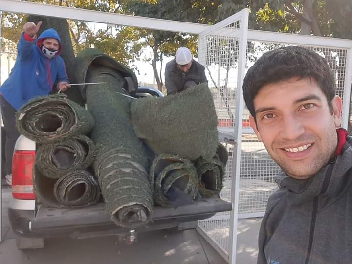 Dias atrás, el mismo Leguizamon, junto a sus hermanos, fueron a retirar parte del césped que será colocado en el lugar.