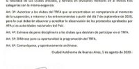 La comunicación lleva las firmas de Pablo Toviggino y Javier Reuque, presidente ejecutivo y secretario general del Consejo Federal del Fútbol.