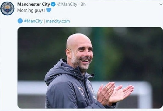 Morning guys! (Buenos días…), con la imagen de “Pepe” Guardiola sonriendo.