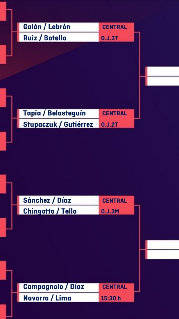 En la continuidad del certamen, este jueves, alrededor del mediodía español, Tapia y Belasteguín se enfentará a otra dupla argentina, en este caso conformada por el puntano "Sanyo" Gutiérrez (Carlos Daniel Gutiérrez Amaya, su nombre completo) y el chaqueño Franco Stupaczuk, los mismos contra los que perdieron los 4tos. de final de dos torneos atrás.