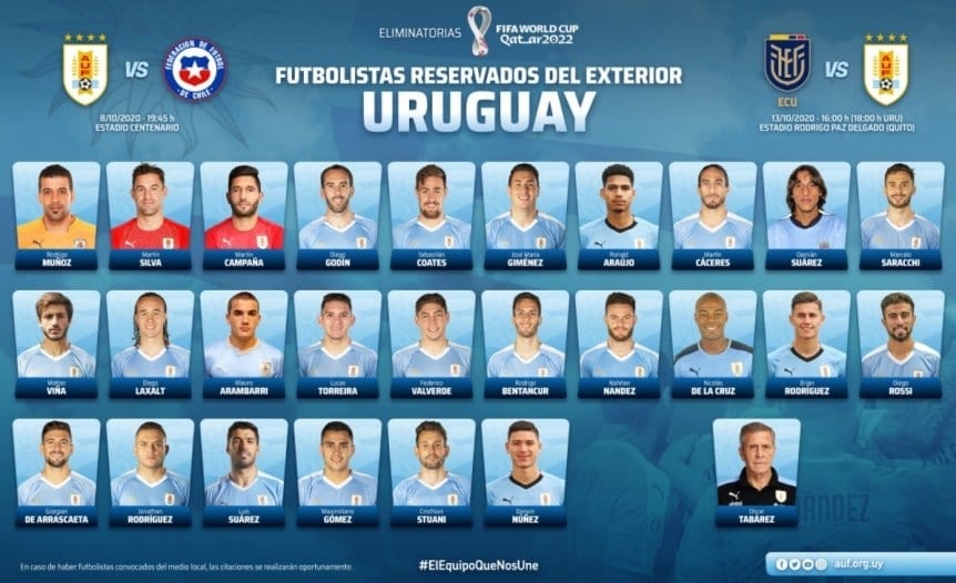 Así, más allá de los nombres, Uruguay ya se prepara para lo que serán sus dos partidos iniciales en el camino hacia Qatar 2022. Primero, ante Chile, el 8 de octubre en Montevideo. Después, ante Ecuador, el 13 de octubre en Quito.