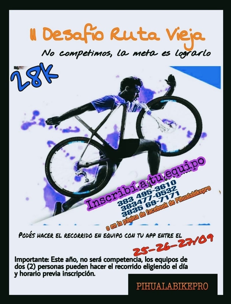 Para ello, los competidores deben contar con la aplicación Strava para el control de los tiempos, aclarando que “es algo que hicimos para estimular la actividad y que sigamos en contacto entre los aficionados al MTB de la zona” y que “por lo tanto no habrá premios, ni podio”.