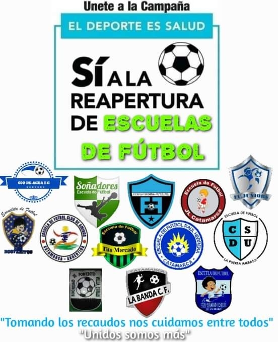 Bajo las consignas: “Sí a la reapertura de Escuelas de Fútbol” y “el deporte es salud”, las escuelas promueven el nucleamiento de las organizaciones de este tipo, con el convencimiento de que “unidos somos más”, insistiendo en el retorno de sus actividades “tomando los recaudos”, y el compromiso de que “entre todos nos cuidamos”.