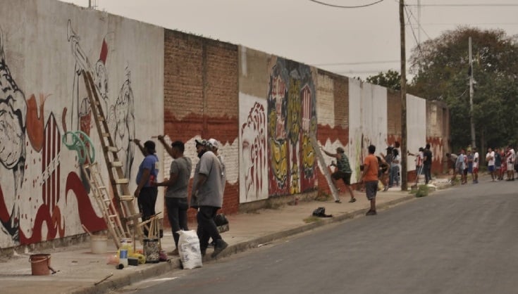 Previamente, se había dado inicio al concurso de murales “Ponele color al barrio”, por las paredes de las afueras del club, con una nutrida participación de jóvenes artistas, acompañada de la sonora actuación de la “murga villacubana”, que al ritmo de sus bombos y trompetas animaban las creativas ideas de los dibujantes y pintores en plena tarea, con los tradicionales cánticos “albirrojos”.