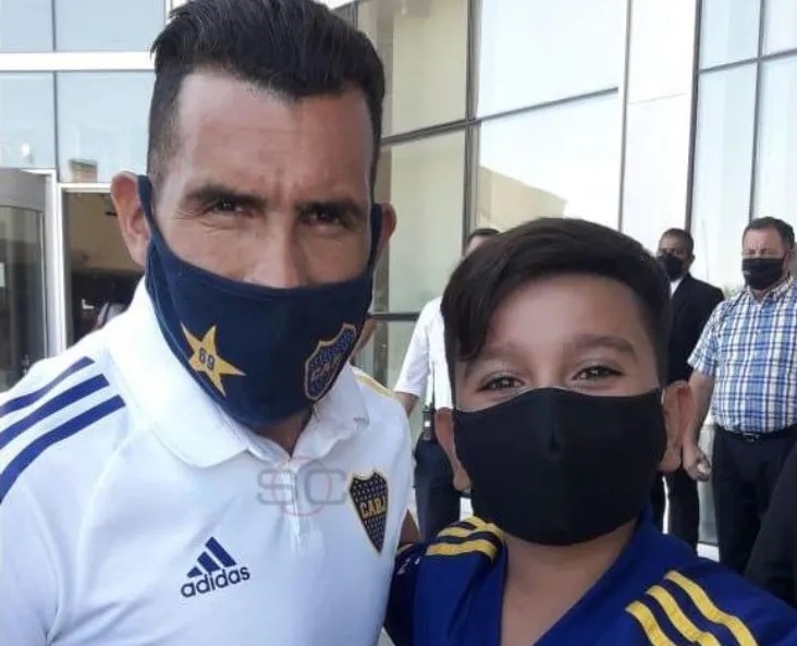 Vestido con chomba blanca y pantalón corto azul, Tevez bajó de la camioneta blanca de la organización que lo buscó en el aeropuerto, se sacó una foto con un hincha y luego entró al hotel Del Bono.