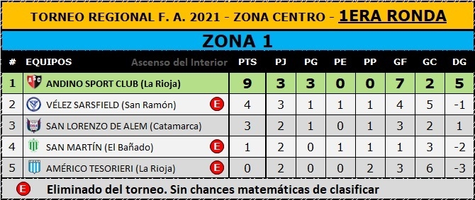 *Si San Martín, ya eliminado como Vélez y Tesorieri, no le gana a Andino, en la próxima fecha, el equipo riojano clasificará a la siguiente ronda.