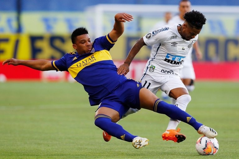 Poco a poco, Santos comenzó a hacer pie. Con las proyecciones de Braga y la posición sin referencia de Soteldo, inquieto e indescifrable con su gambeta, el faro de atención para el Xeneize. Y el ritmo del cotejo empezó a desinflarse, casi que prescindió de las emociones.