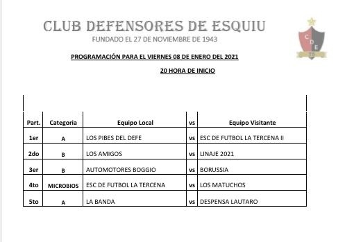1er. Partido: Cat. “A”, Los Pibes del Defe vs. Esc. De Fútbol La Tercena II.