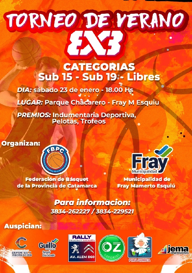 Con escenario en el “Parque Chacarero” de Fray Mamerto Esquiú, y jugándose con reglas oficiales del “3x3”, la actividad dará inicio el sábado 23 de enero, a partir de las 18 hs.