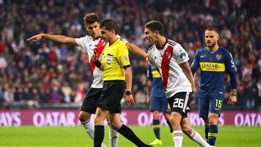 El uruguayo de 45 años fue el juez de la revancha disputada en el Estadio Santiago Bernabéu de Madrid, corazón de España, aquel 9 de diciembre de 2018. Si bien todos los reflectores apuntaron directamente a los futbolistas del Millonario y el Xeneize, el silbato charrúa apareció en el centro de la escena durante varios pasajes del Superclásico.