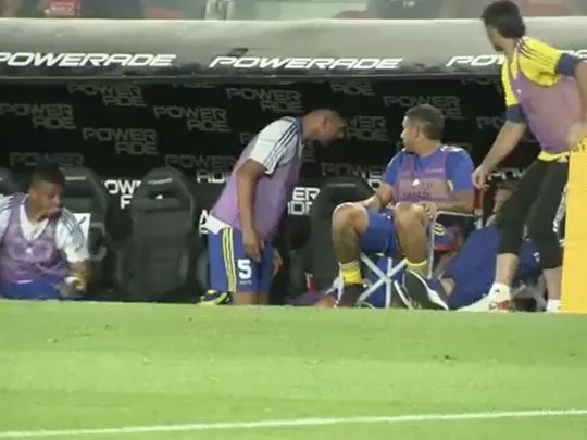 Los dos primeros fueron a los 16 minutos cuando dispuso las salidas de Agustín Almendra y Cristian Pavón. Justamente Kichán fue uno de los protagonistas al reaccionar con furia en el banco de los suplentes. El delantero, luego de saludar al entrenador, le pegó en varias oportunidades al techo del sector de relevos y luego revoleó un par de botellas al campo de juego. Una de ellas incluso debió ser recogida por su compañero Fabra, mientras que la última terminó salpicando a Carlos Zambrano.