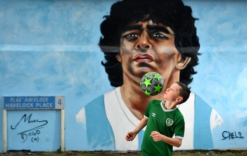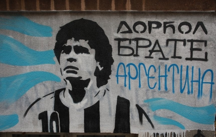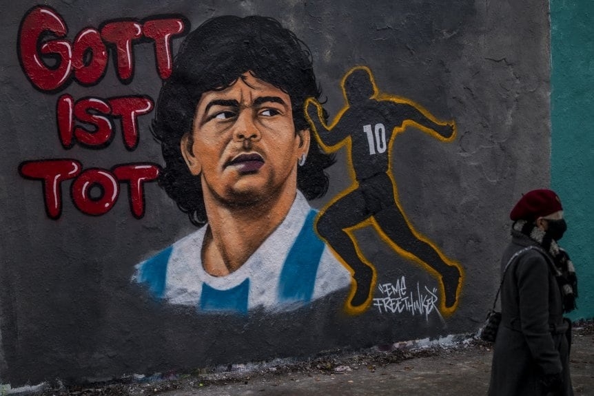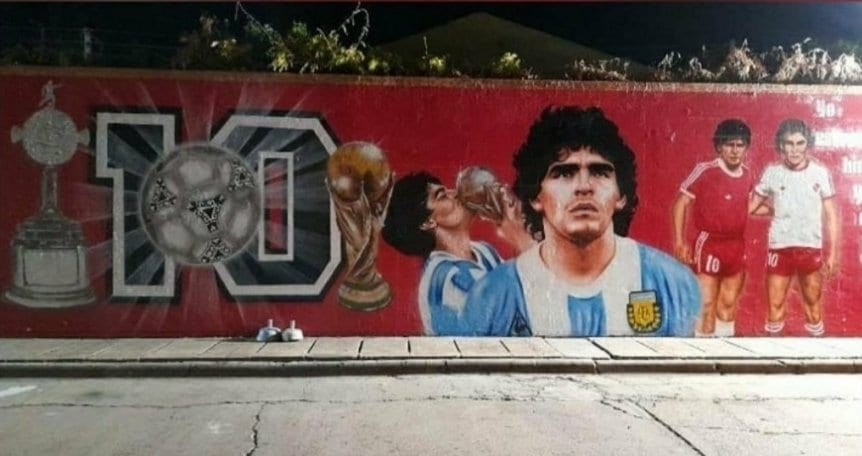 Entre tantas cosas que se hicieron, hubo centenares de murales para conmemorar al astro argentino, algunos en los lugares donde jugó, como Boca, Argentinos Juniors, Napoli o Gimnasia, pero también en países que por ahí ni siquiera visitó, pero donde también lo amaban.