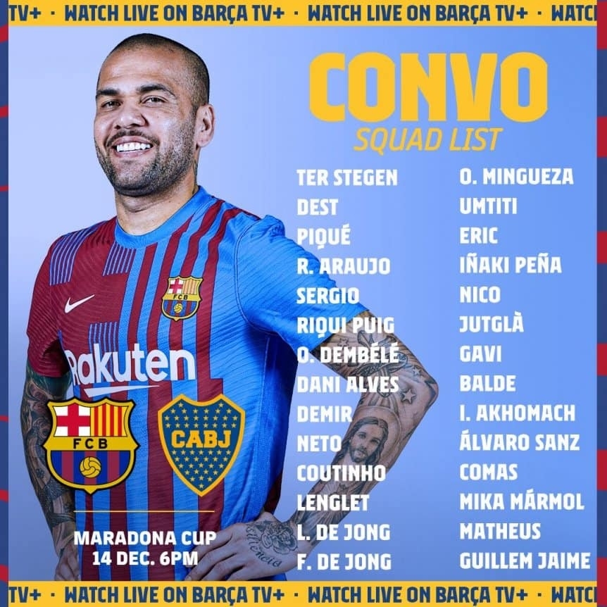 Mientras Boca ya viajó hacia Arabia Saudita, Barcelona presentó su lista de convocados con Dani Alves para el amistoso por la Maradona Cup.