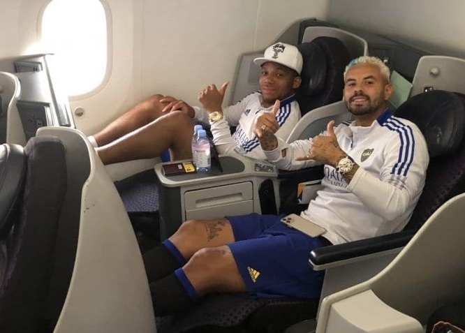 Originalmente, el Xeneize iba a partir a las 11 desde Ezeiza pero el vuelo sufrió una demora y terminaron saliendo hacia Arabia a las 18 (el plantel almorzó en una parrilla cercana al aeropuerto). Para la cita, fueron convocados 26 jugadores: los 23 que estuvieron ante Central Córdoba mas Norberto Briasco, Rodrigo Montes y Jorman Campuzano.