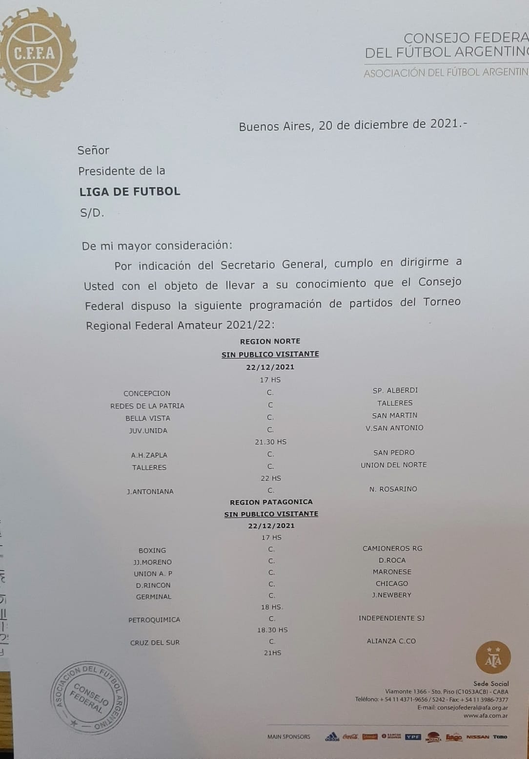 Luego de los graves hechos de público conocimiento sucedidos en el partido entre El Porvenir de San Rafael y San Martín de Mendoza, más otros incidentes en diferentes encuentros, el Consejo Federal resolvió PROHIBIR el PÚBLICO VISITANTE en TODOS los partidos del Torneo Regional.
