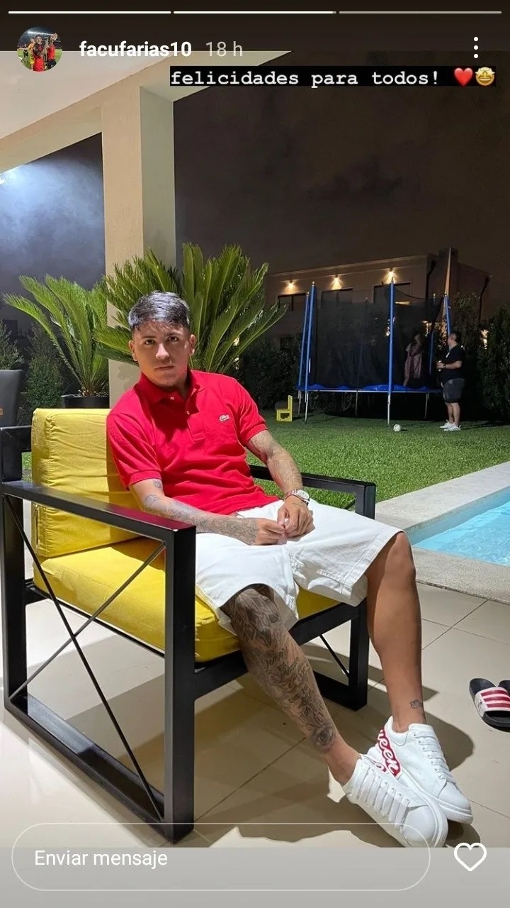 A todo esto, en su saludo navideño, el futbolista de 19 años subió una historia de Instagram en la que se lo observa sentado en una casa con un espectacular parque y pileta. "Felicidades para todos!", escribió el todavía jugador del "Sabalero".