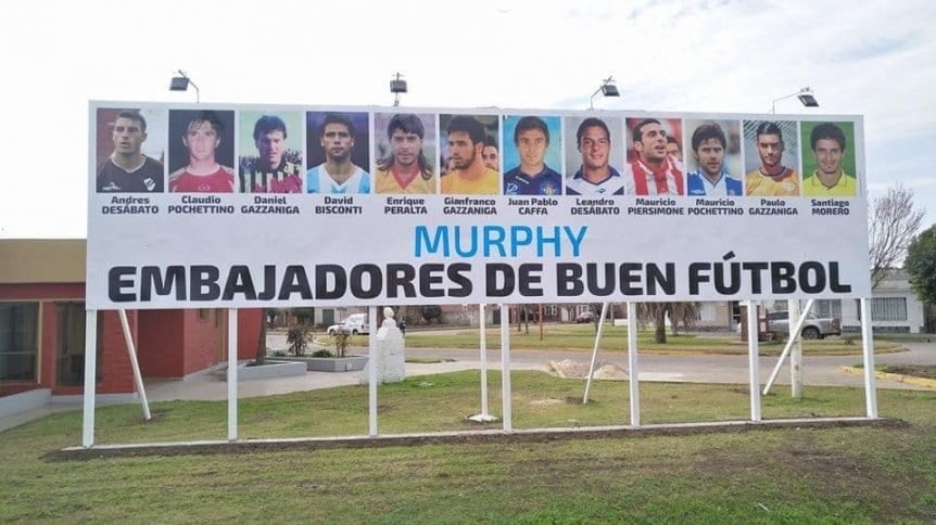 En aquellas tierras, pertenecientes al Departamento de General López, se respira fútbol. Basta con transitar la Ruta 33 y pasar por la entrada de la localidad para darse cuenta. “Murphy. Embajadores del buen fútbol”, reza el cartel que también muestra la foto y los nombres de cada uno de los jugadores que surgieron allí.