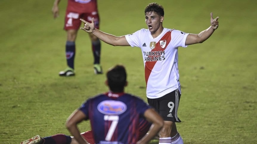 A los 14 minutos, River encontró la primera gran grieta en la muralla propuesta por Depro: Álvarez combinó con Suárez, quien dominó y definió con gran clase ante el arquero Correa: 1-0.