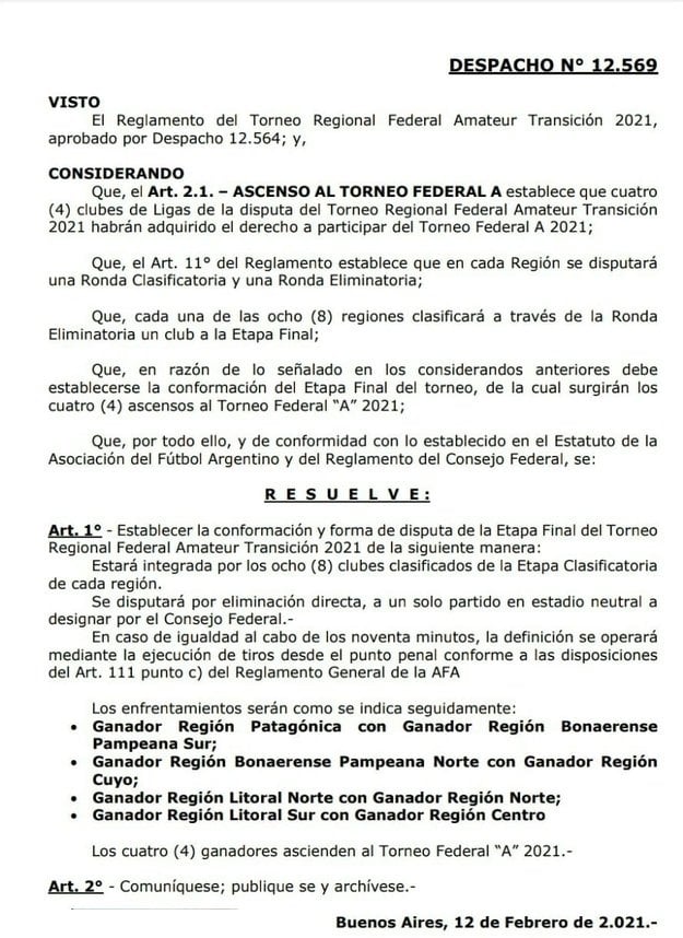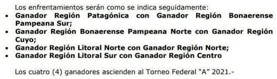 En tal sentido, se resolvió que los cruces finales por los ascensos al Federal A serán, como la final regional, a partido único, aunque en cancha neutral.
