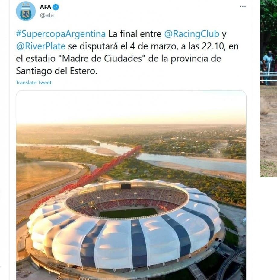 El Estadio de Santiago del Estero que albergará algunos partidos de la Copa América 2021 que se realizará en conjunto entre Argentina y Colombia tiene nombre: "Estadio Único Madre de Ciudades". El de Racing-River será el primer partido importante a disputarse allí. Luego le tocará a la Selección Argentina frente a Uruguay (24/3) por las Eliminatorias Sudamericanas.