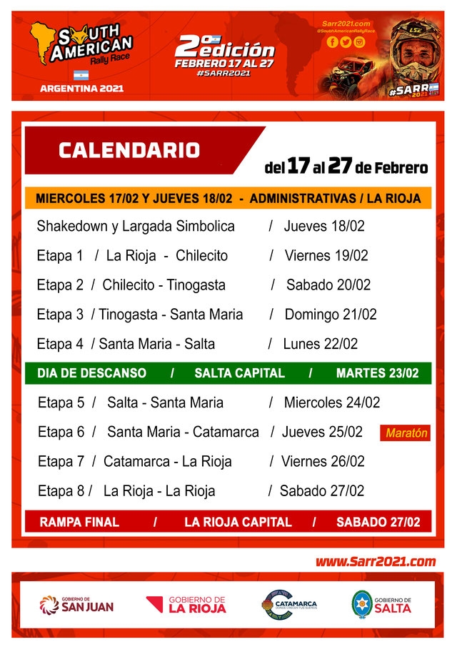 Aproximadamente 50 equipos de motos, cuatriciclos, autos, y camionetas, se desplegarán en la competición que arranca el jueves 18 en la Capital de La Rioja, el 19 pasarán a Chilecito y el sábado 20 arribarán a Tinogasta, el enlace será cerca de estación de rebaje en el Río Abaucán y competirán hasta Fiambalá, pasando por El Puesto, Anillaco y desde Fiambalá arranca otra etapa en los médanos y dunas y luego regresan a en enlace a Tinogasta.