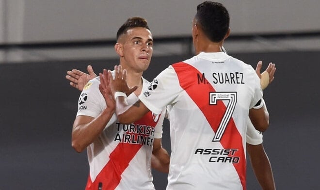 De menor a mayor, los de Marcelo Gallardo fueron justificando el triunfo en su casa. A los 36 minutos, el Millonario se puso en ventaja: Rafael Santos Borré hizo el primero, al límite del fuera de juego. Con ese tanto se fue 1-0 al descanso.