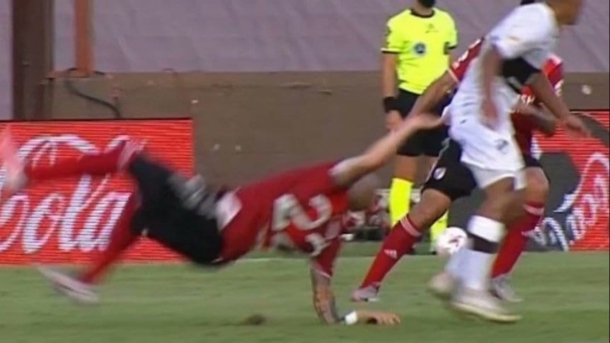 Javier Pinola, defensor de River, sufrió una durísima caída que le provocó la fractura del antebrazo derecho, por lo que tuvo que salir reemplazado a los 13 minutos del segundo tiempo. La situación se dio tras un salto a cabecear una pelota. El defensor tuvo que ser asistido en el campo de juego, del cual fue retirado en el carrito.