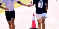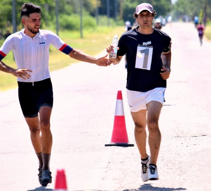 La competencia empezó con natación y se realizó en grupo de cinco competidores, los cuales luego dieron la posta a los ciclistas y concluyó con la carrera pedestre.