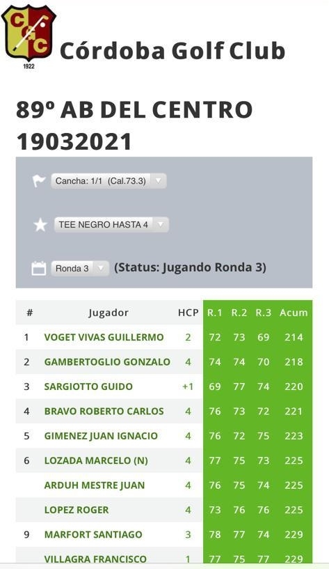 Sus vueltas fueron 72, 73 y 69, para terminar con un total de 214 golpes, lo que le permitió sacarle 4 golpes al segundo y 6 golpes al tercero.