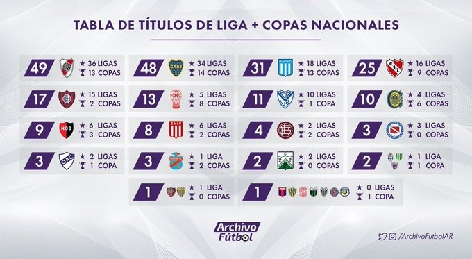 En tanto, con la obtención de la final que medía a los campeones 2018/2019 de la Superliga (Racing) y la Copa Argentina (River), el Millonario superó a Boca en el rubro títulos nacionales, con 49 sobre 48.