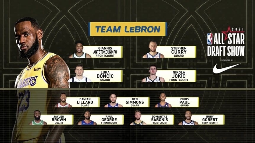 El jugador de Los Ángeles Lakers seleccionó a Giannis Antetokounmpo, Stephen Curry, Luka Doncic y Nikola Jokic para que lo acompañen en el quinteto inicial. Como suplentes, eligió a Damian Lillard, Ben Simmons, Chris Paul, Jaylen Brown, Paul George, Domantas Sabonis y Rudy Gobert.
