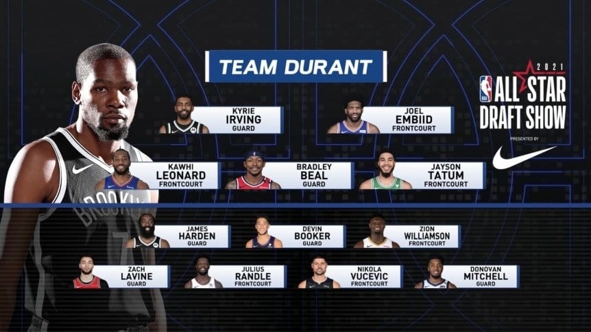 Los capitanes de ambos equipos -los dos jugadores más votados por la gente- eligieron a quienes los acompañarán entre todos los jugadores seleccionados para el evento. En el caso de Durant, si bien no jugará debido a que se está recuperando de una lesión, conservará su rol de capitán y seleccionará a su equipo.